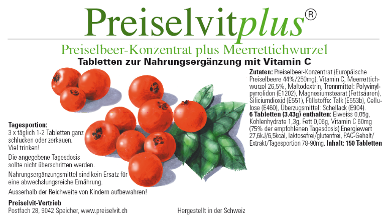 Enthält Preiselbeerkonzentrat, Meerrettichwurzelpulver sowie Vitamin C